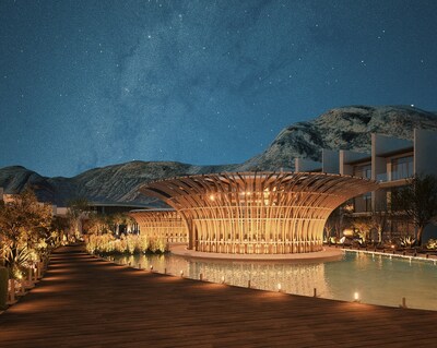 El vestíbulo, centrado en un olivo vivo, simboliza la resiliencia y la longevidad. El Wellness Center, ubicado en el corazón del resort, contará con un elemento de agua estilo cenote. Respecto a la oferta gastronómica integra un restaurante, con vistas panorámicas al mar, además de una piscina cubierta al aire libre que difumina la línea entre la tierra y el mar.